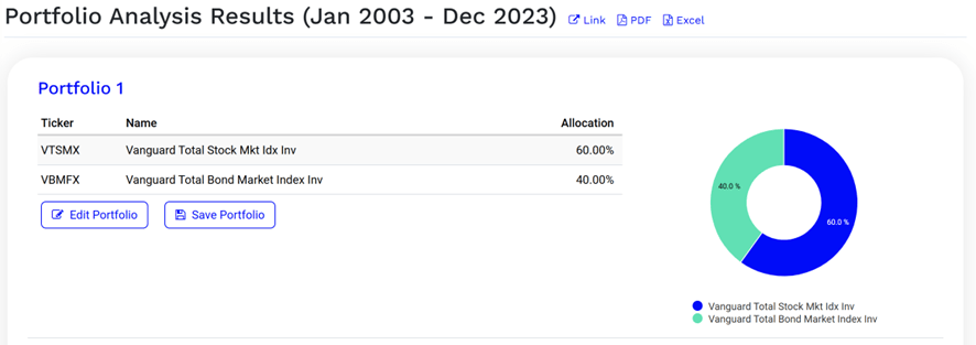 Se dovessimo individuare un “modello base”, tanto semplice quanto efficace, con ogni probabilità sarebbe il 60/40. Il nome in questo caso dice tutto: 60% indice azionario (nella versione classica, americano, ma potrebbe essere benissimo anche mondiale), 40% indice obbligazionario (anche qui vale la stessa considerazione fatta rispetto alle azioni). Analizzeremo allora da vicino lo sviluppo di un investimento fatto proprio con un portafoglio di questo tipo.